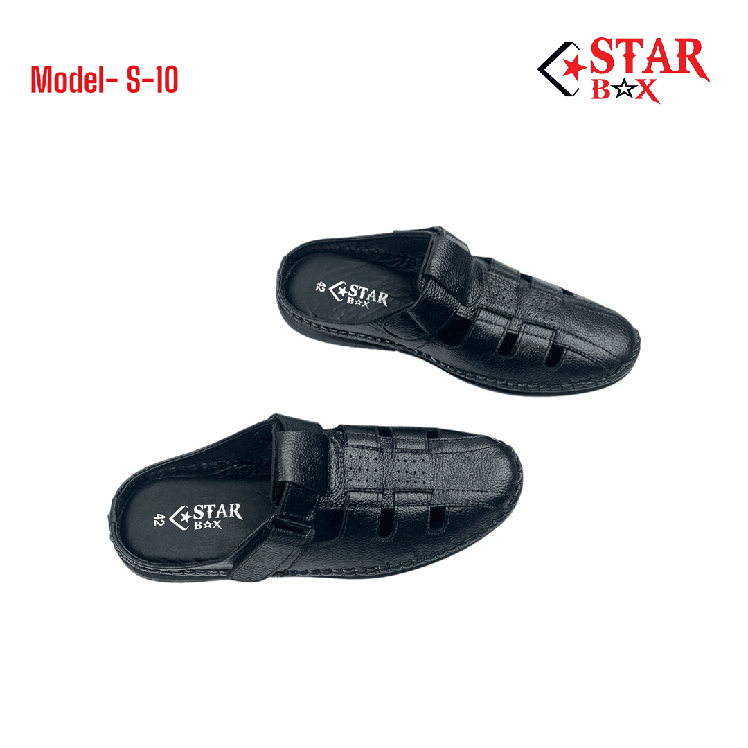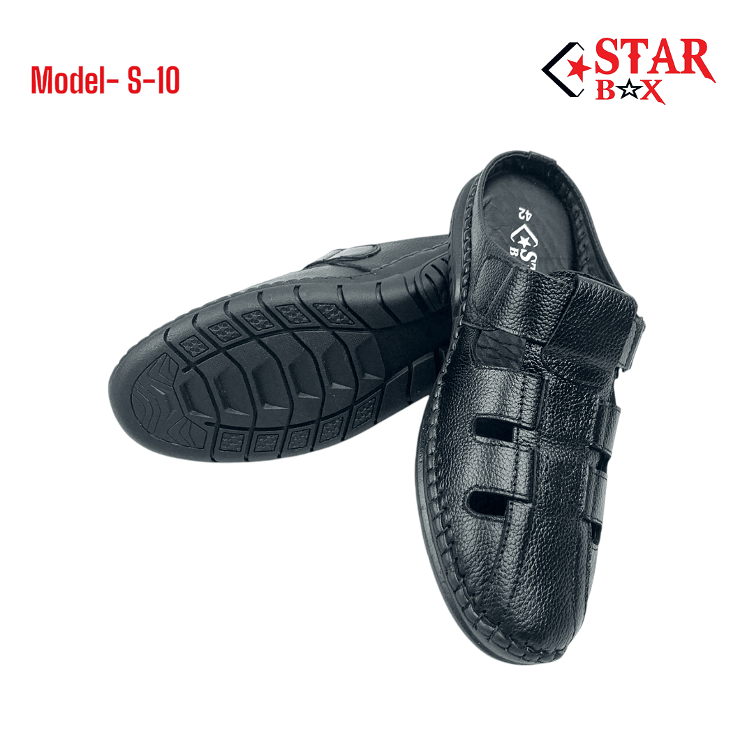 - The Black Sacchi Half Shoes – (S-10) feature a premium leather upper, minimalistic design, and classic black color, offering comfort and versatility for everyday wear.